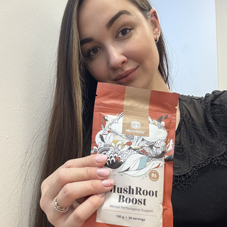 "MushRoot Boost é tudo o que preciso para um dia produtivo."