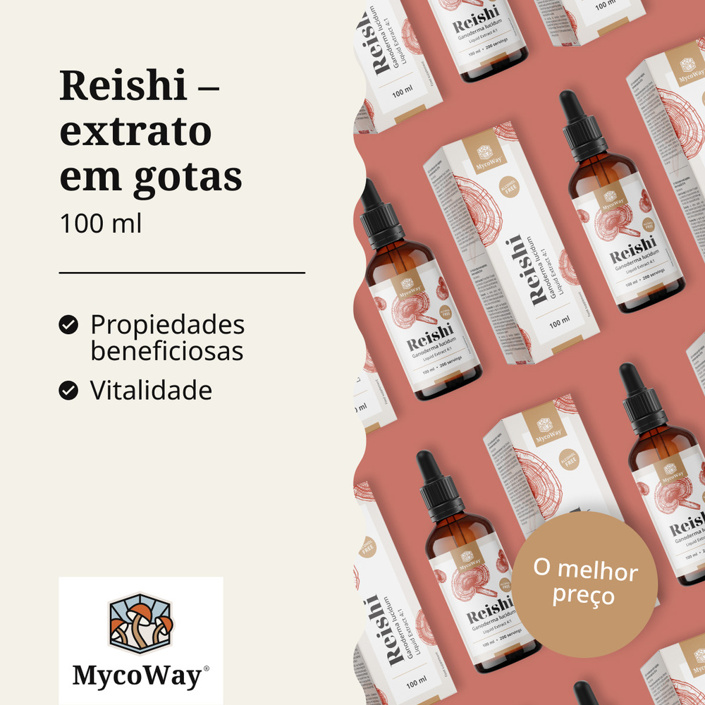 O Reishi em forma líquida combina a longa tradição das florestas asiáticas com praticidade e facilidade de utilização. O extrato 4:1 em gotas oferece uma forma concentrada do cogumelo, permitindo uma integração rápida e simples no dia a dia.