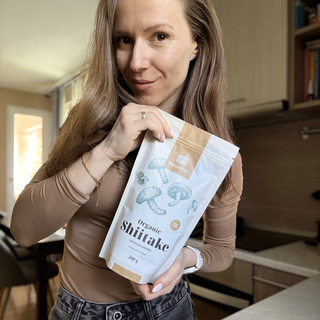 "Com o pó de Shiitake BIO, incorporo de forma fácil e eficaz uma fonte importante de fibra alimentar no meu organismo."